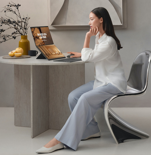 Önceki nesle göre %5 daha küçük bir kasaya sahip olan cihaz, seyahat halindeki profesyonellerin tüm ihtiyaçlarına yanıt veriyor. Yeniden tasarlanan entegre kickstand (destek ayağı) ve gizli menteşe yapısı, tüm kullanım modlarında sarsılmaz bir denge sunuyor. Cihazın güçlendirilmiş Bluetooth® klavyesi, yeni MagLatch™ yerleştirme sistemi ve geri çekilebilir pogo pinleri sayesinde iki OLED panel arasına zahmetsizce ve güvenle yerleşiyor.